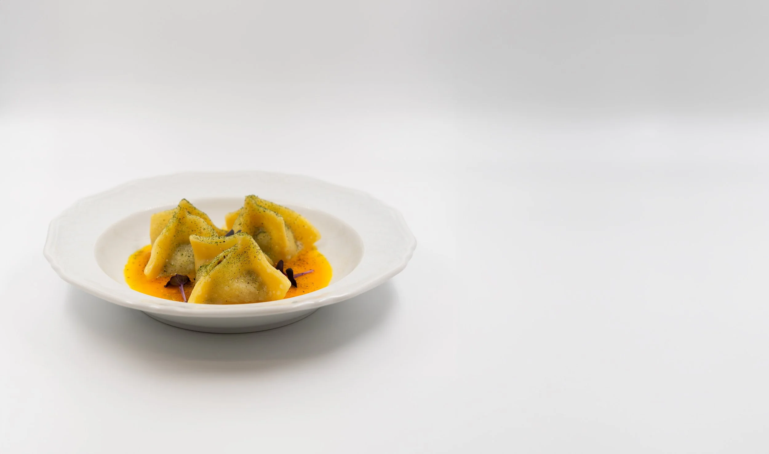 Fagottini alla genovese napoletana, dove la genuinità della carne si unisce a una crema vellutata di carote, zenzero e lime. Un connubio inaspettato che unisce la dolcezza delle carote, il tocco speziato dello zenzero e la freschezza del lime, per un piatto elegante e sorprendente.