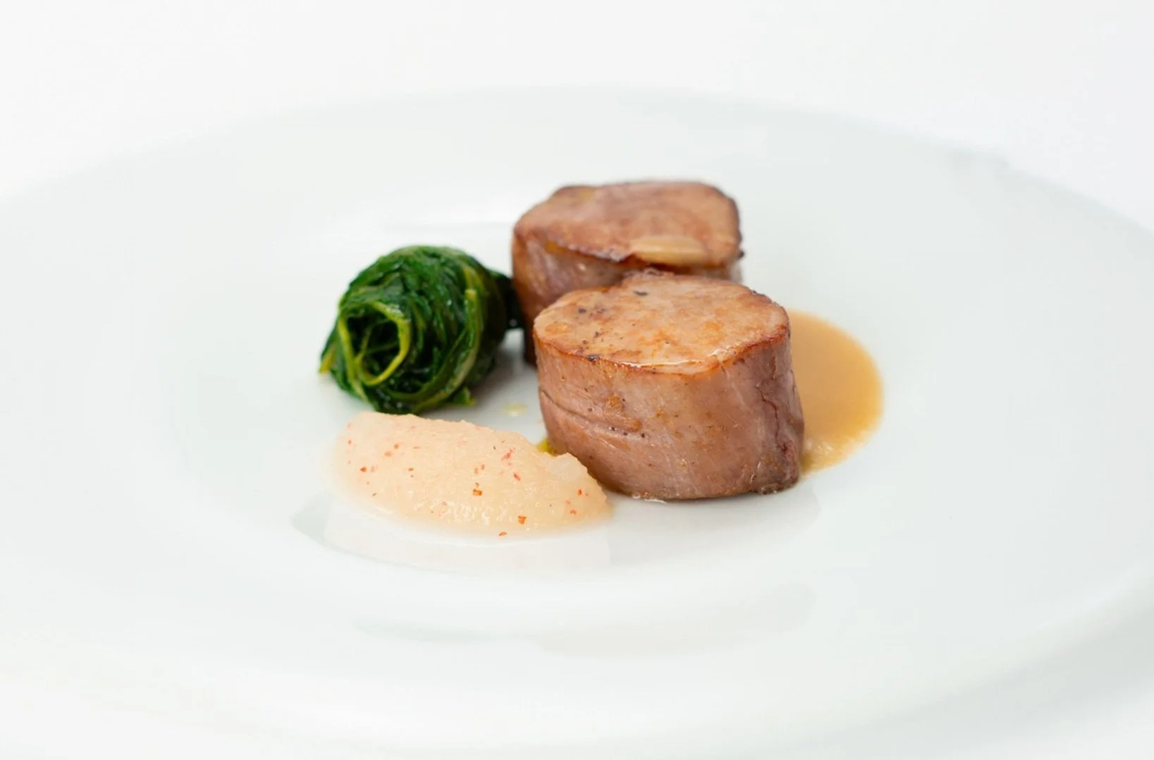 l tenero filetto di maialino, delicatamente cotto in CBT, si sposa armoniosamente con la dolcezza della composta di mele verdi e pepe, aggiungendo una nota fresca e fruttata al piatto.