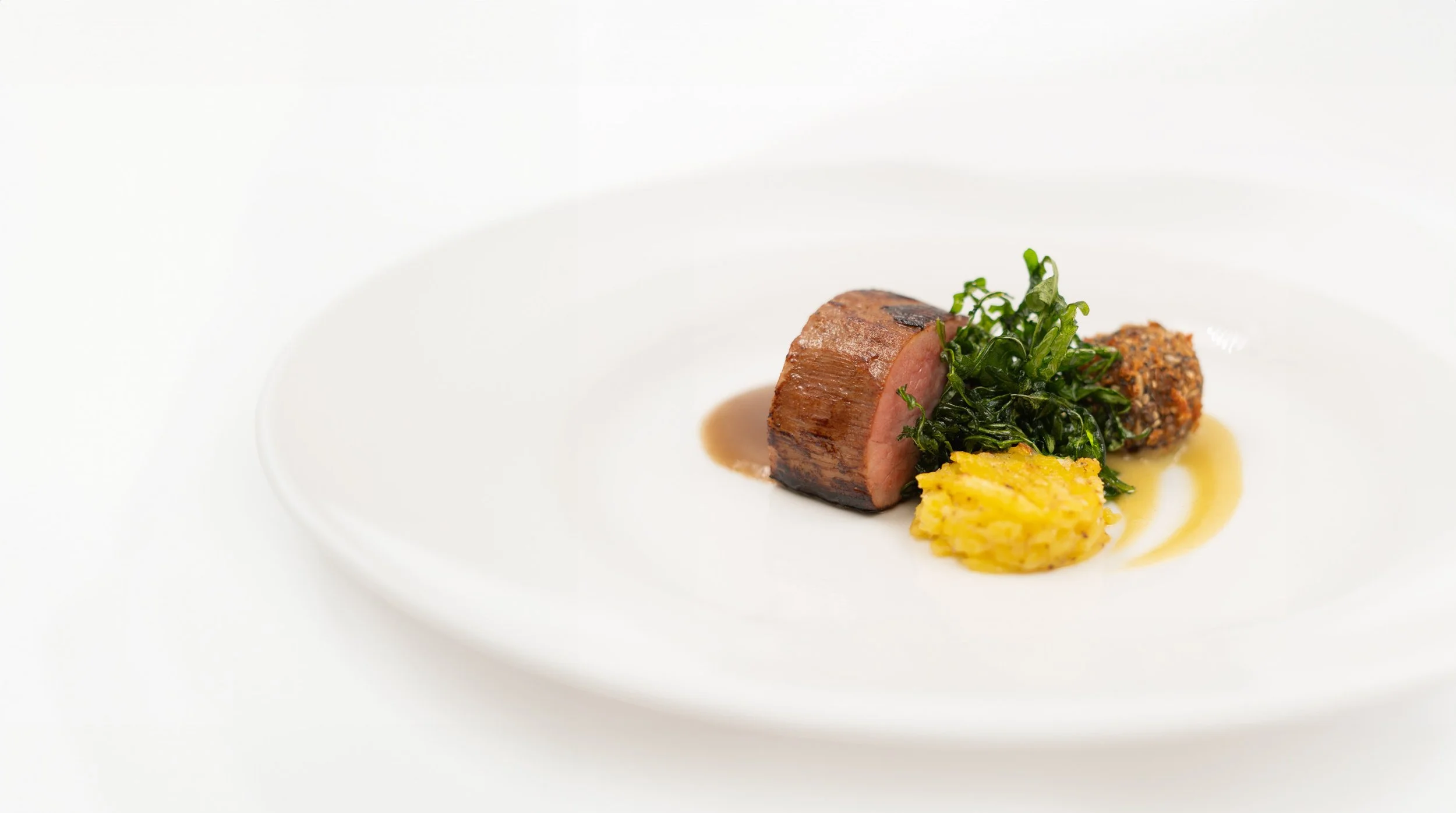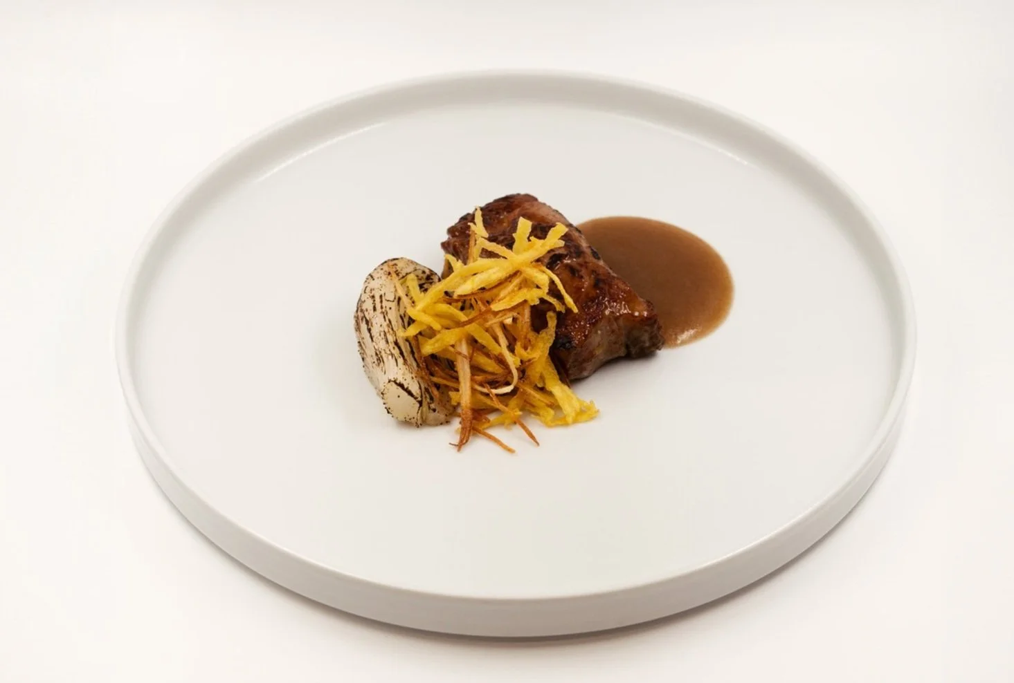 Un manzo preparato con cura, nappato da una soluzione di senape e miele che esalta la carne con dolcezza e carattere. Il finocchio bruciato e le patate paglia croccanti aggiungono profondità e contrasto, creando un piatto equilibrato e ricco di sfumature.
