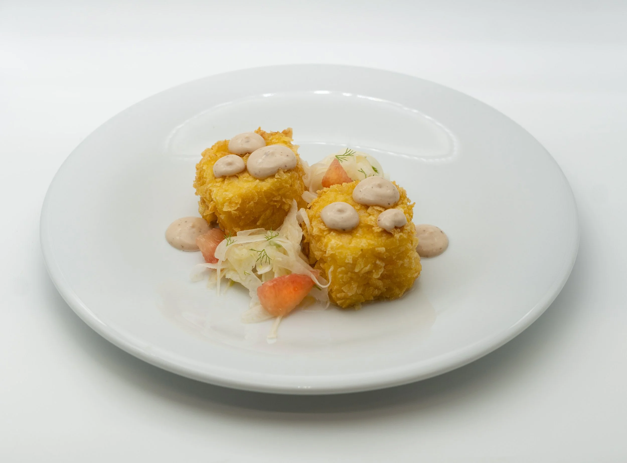 La delicatezza e la sapidità del merluzzo nordico si sposano con la cremosità della leggera crema allo zafferano, arricchita da note aromatiche e un colore dorato che accarezza il palato.
